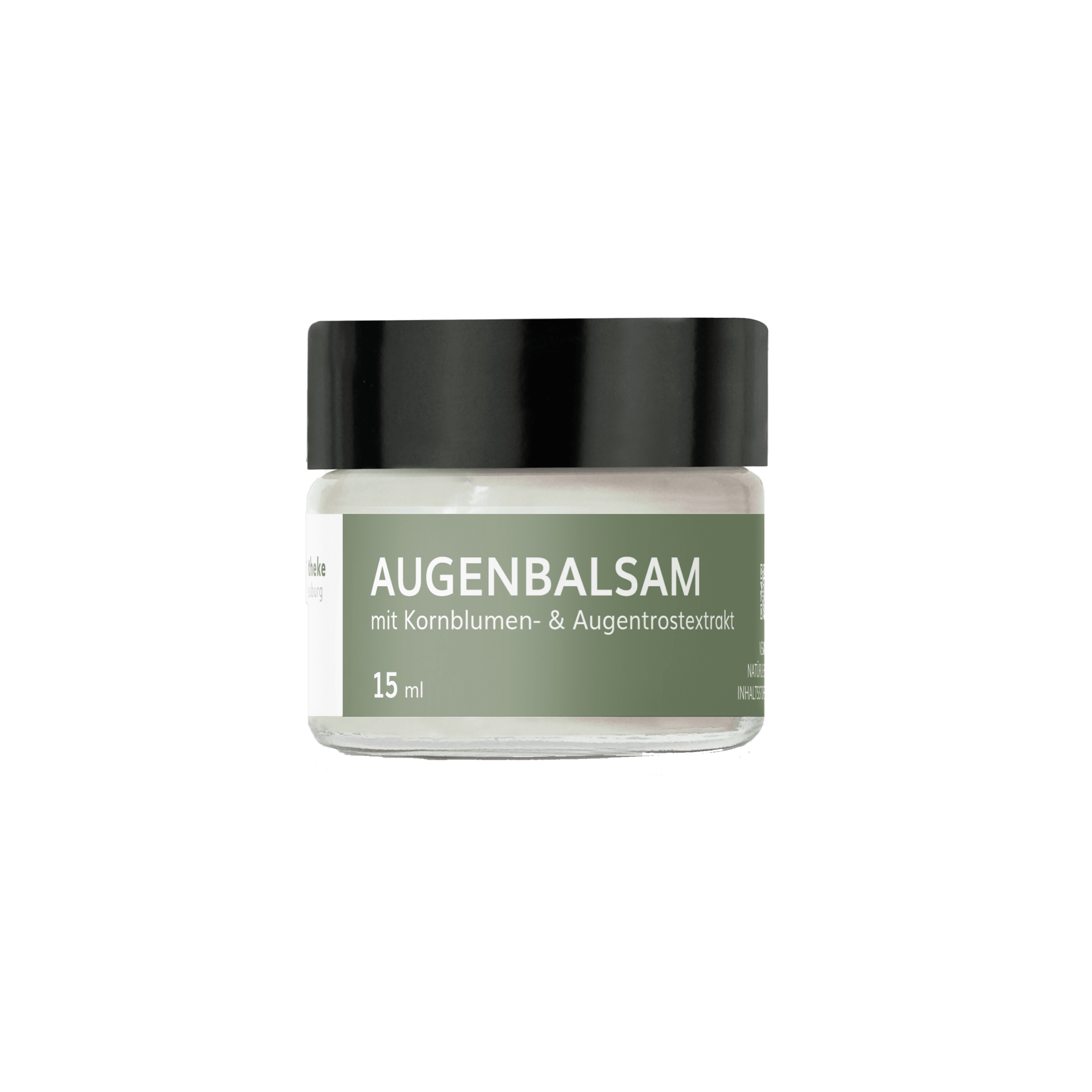 Augenbalsam schützt die zarte Augenpartie mit Apfelfruchtextrakt, Gurkenextrakt, Kornblumenextrakt, Augentrostextrakt, Sonnenblumenöl, Mandelöl, Nachtkerzenöl, Sheabutter*, Traubenkernöl.