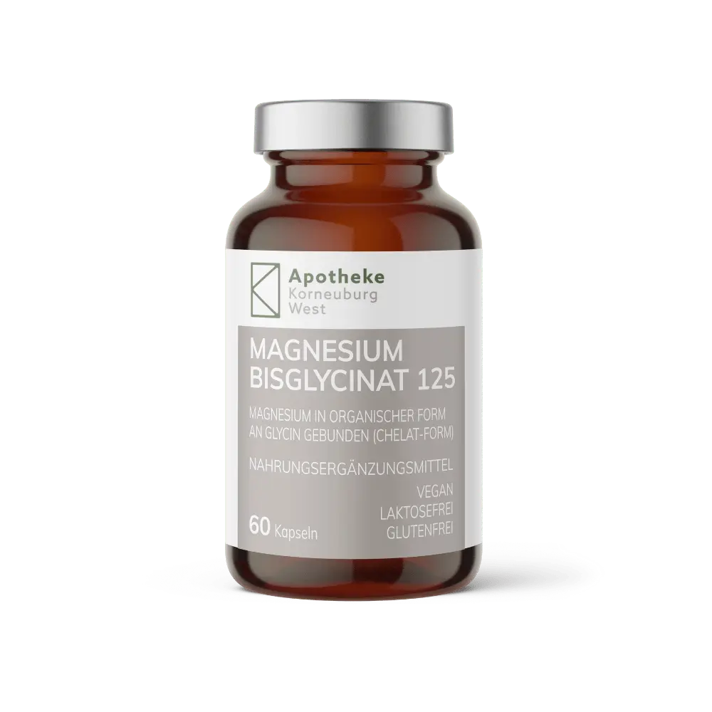 Magnesium in organischer Form an Glycin gebunden (Chelat-Form).