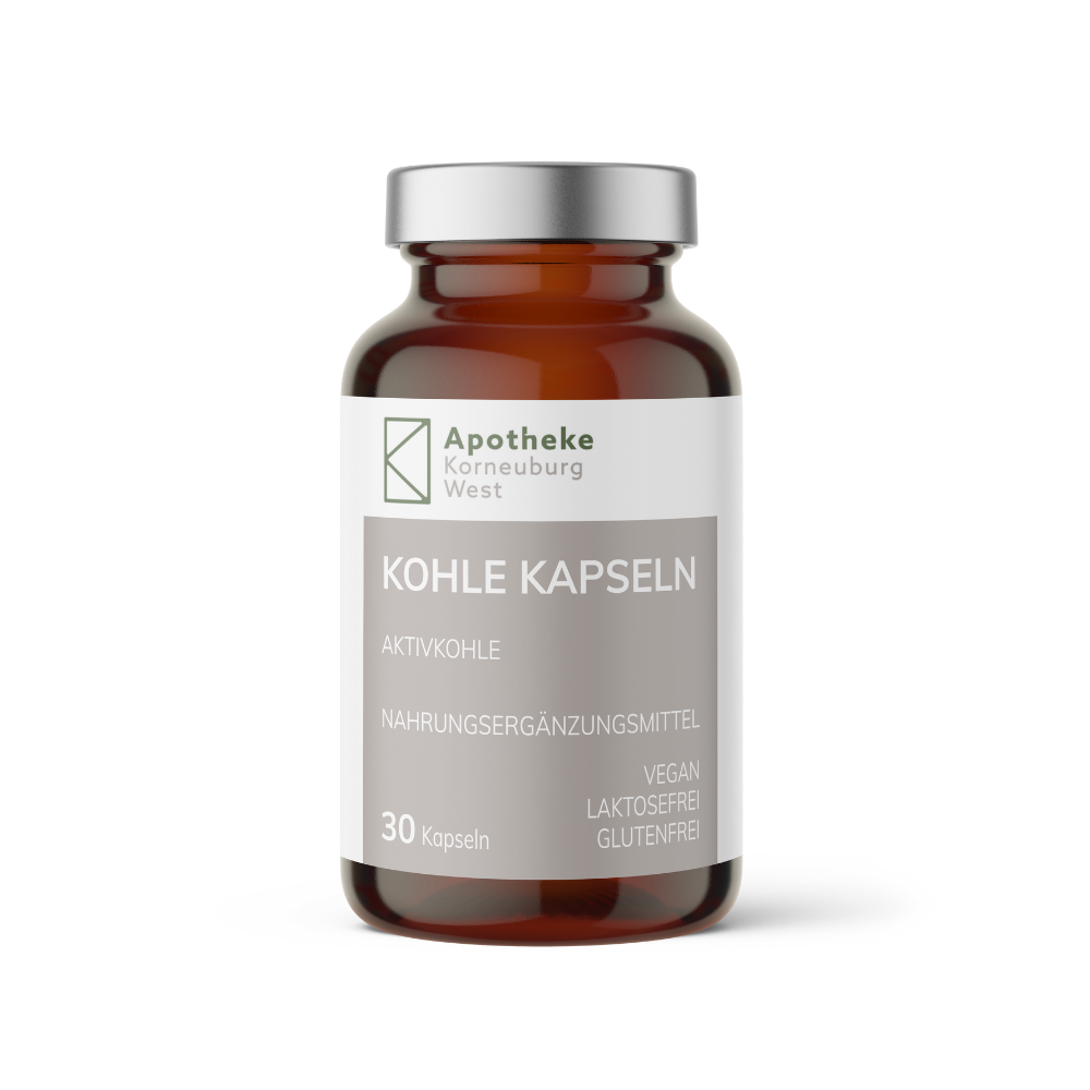 Erwachsene nehmen 3 x 2 Aktivkohle Kapseln mit ausreichend Flüssigkeit ein.